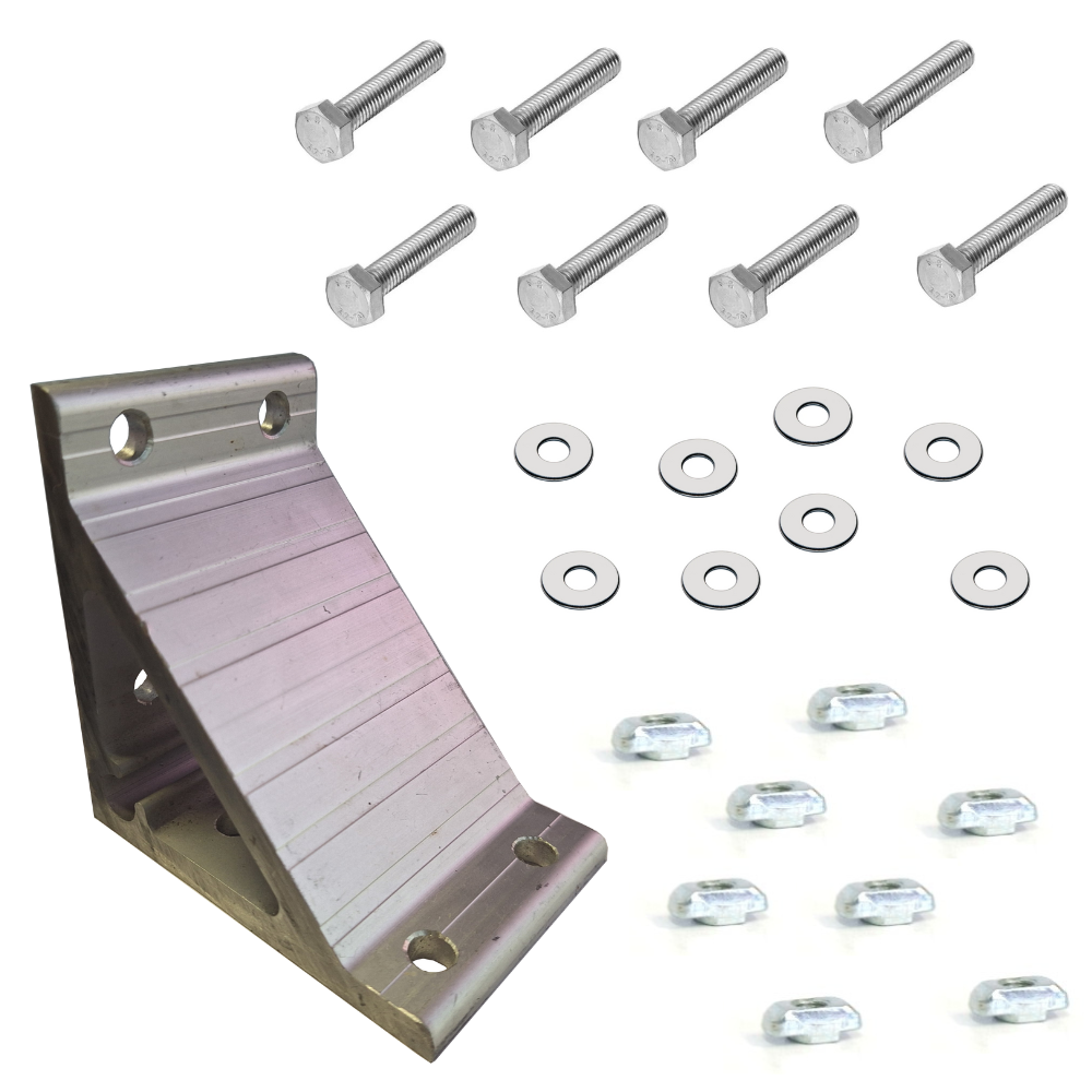 Cantoneira de Alumínio 100x100mm L=58mm 4xFuros 6,5mm c/ Kit de Fixação
